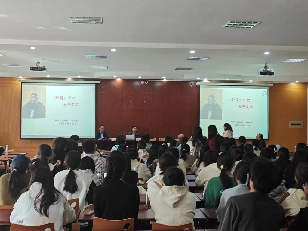 10月21日下午14:30,文学院邀请山东大学文学学士、历史学硕士韩凤举,曲阜市文物保护中心副主任,文博研究馆员李玉春参与活动,为广大师生进行《论语》讲读。22日上午,文学院党委书记杨爱民,副院长黄传波等出席活动,现场师生积极参加“背《论语》免费游三孔”的考试,试题除了涉及背诵论语、理解论语,还涉及到孔子生平事迹和曲阜“三孔”常识。学生们答题时聚精会神,最终取得了不错的成绩,获得了荣誉证书,提高了师生们学论语、背论语的热情。