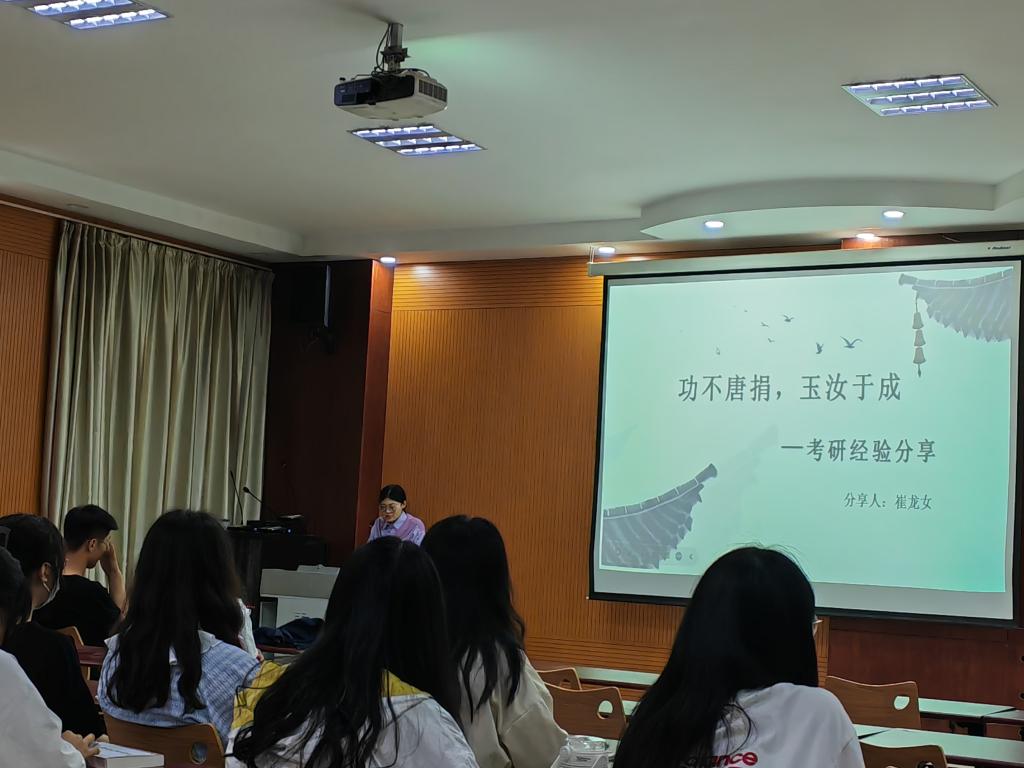 会上,优秀毕业生崔龙女首先从考研目标的确定、考研规划的制定、考研院校的选择、考研复习的方法等多方面分享了自己的考研经验。同时,为学弟学妹们提供了一些备考建议,激励大家明确目标、奋发向上、坚持不懈。优秀毕业生张帅结合自身的学习经历,向学弟学妹们分享了学习技巧,希望学弟学妹们制定循序渐进、适合有效的学习计划并予以实施,找准定位。其求真本领、练真功夫,依靠学习成就青春梦想的执著精神赢得满堂喝彩。