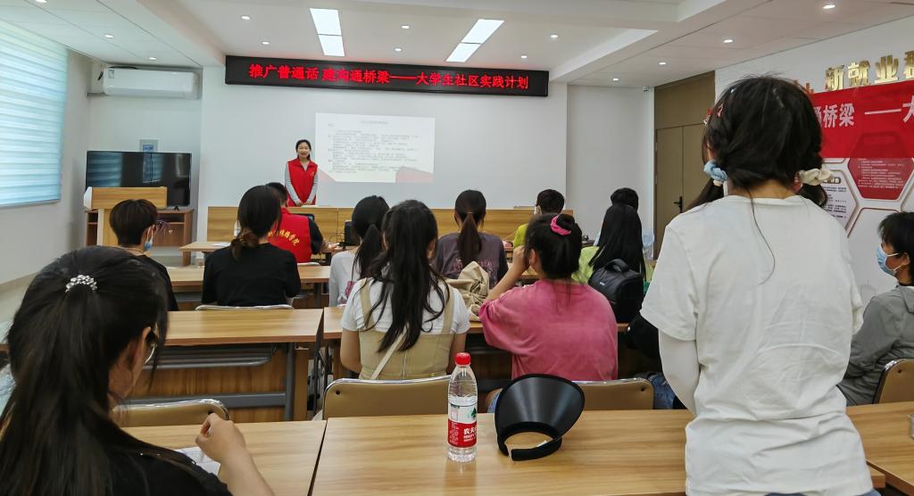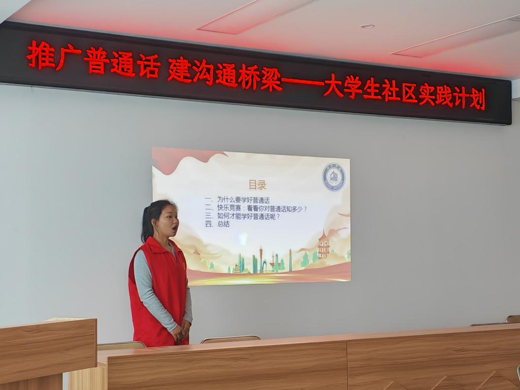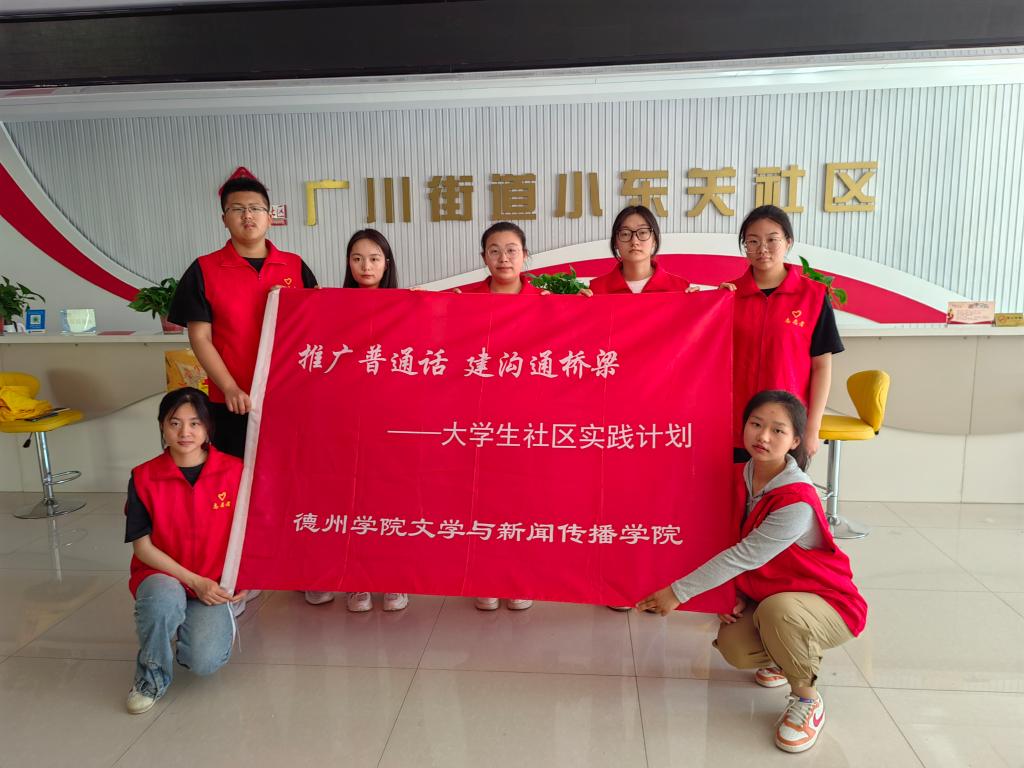 为积极推广和规范使用国家通用语言文字,增强居民的语言规范意识,提高对语言文字重要性的认识,营造良好的语言环境,5月16日,必赢国际437官网文学与新闻传播学院汉语言文学专业2022级4班团支部走进德城区广川街道小东关社区开展“推广普通话,建沟通桥梁”主题大学生社区实践活动。