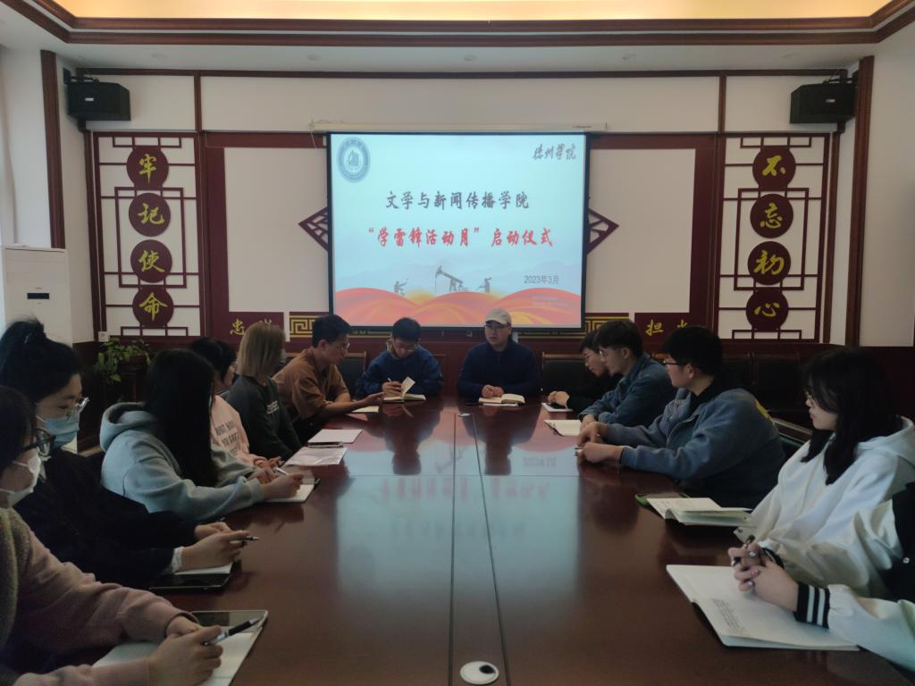 为引导青年学子学习和践行雷锋精神,3月7日,文学与新闻传播学院2023年“学雷锋活动月”启动仪式在博文楼329会议室举行。文学与新闻传播学院学生工作队伍、团学骨干、各团支部书记、社团负责人、学生会负责人参加了启动仪式。