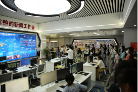 ▲签约仪式后,必赢国际437官网文学与新闻传播学院新闻学专业的师生参观德州广播电视台融媒体中心。