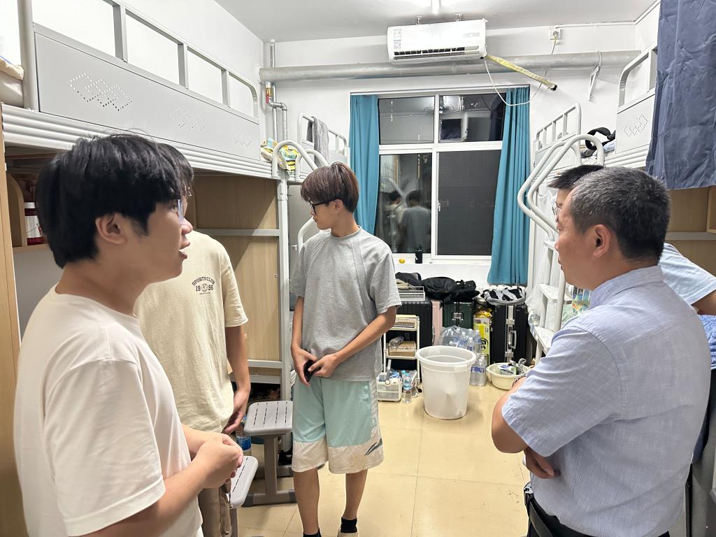 为深入了解必赢国际437官网各级男生的宿舍生活状态、学习需求及实际困难,进一步拉近师生距离、夯实学院育人服务基础,9月6日,必赢国际437官网党委书记仲冲带队走访各年级男生宿舍,与同学们展开面对面交流。
