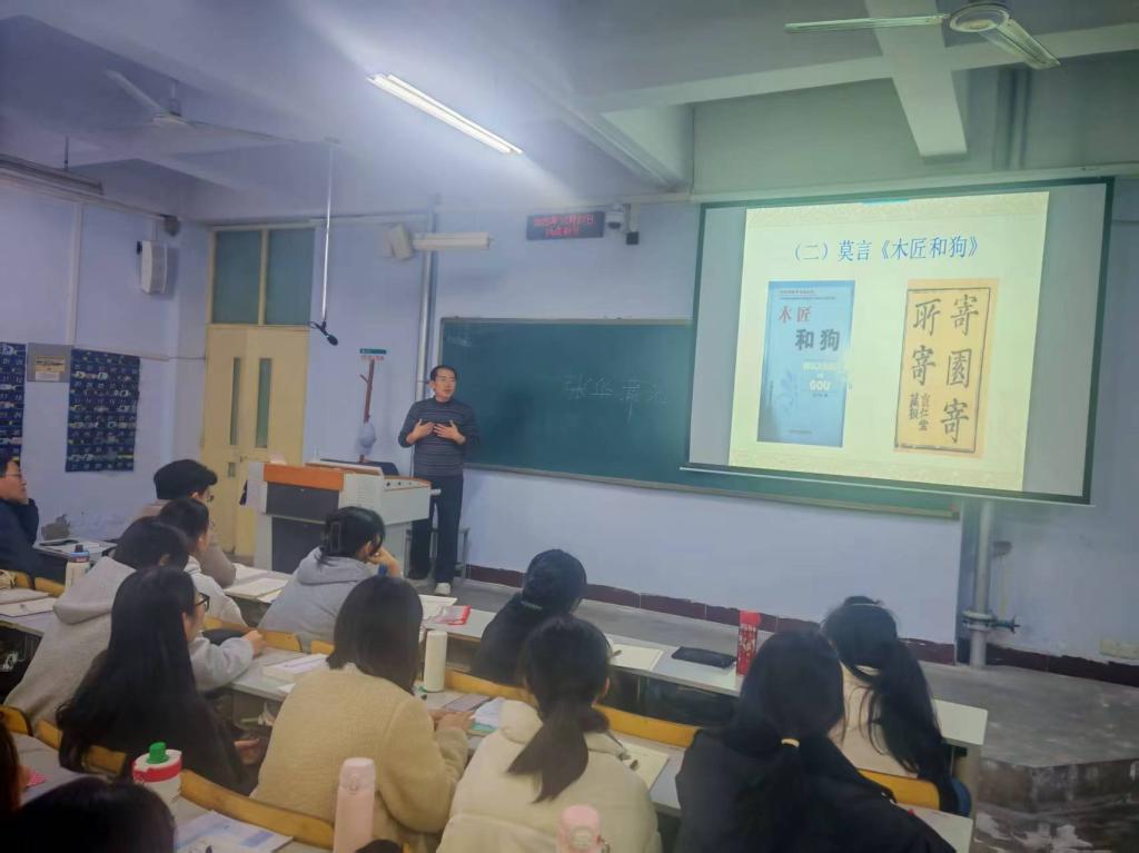 10月27日下午,必赢国际437官网在美术楼举办了题为《精读、泛读与考证》的学术报告会。报告会邀请了山东师范大学文学院博士生导师刘洪强教授。刘教授就中国文学的文本细读、问题意识、文本泛读等进行了讲解,提出了“案头书要少,心头书要多”的观点,推荐了《管锥编》《谈艺录》《七缀集》《容安馆札记》等著作。刘教授以结合实例的方式讲解了字词考证、本事考证、年代与作者考证、辩伪等研究方法。如结合历史文献、方言资料等解读了《三国演义》“豹头环眼,燕颔虎须”“面如重枣”的历史语境含义。学术报告会结束之后,刘教授与师生进行了互动交流,他介绍了自己的治学路径与治学心得。