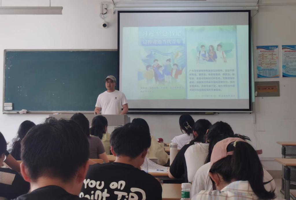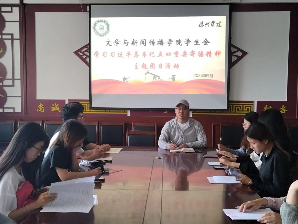 团课上,学生会成员逐个分享交流学习体会。文学与新闻传播学院2021级汉语言文学专业胡文静,是文学与新闻传播学院学院学生会主席团成员,“推普助力乡村振兴”国家级志愿服务队负责人,山东省2023年暑期“三下乡”优秀学生,她表示:“我们青年要将总书记寄语内化于心,外化于行,积极投身社会实践,深入基层参与志愿服务,在艰苦奋斗中锤炼自己的品格,始终保持对党的忠诚和对人民的热爱。继承和发扬五四运动的光荣传统,在新的历史条件下,保持艰苦奋斗的精神风貌,勇于面对困难和挑战,为实现中华民族伟大复兴的中国梦贡献青春力量。”