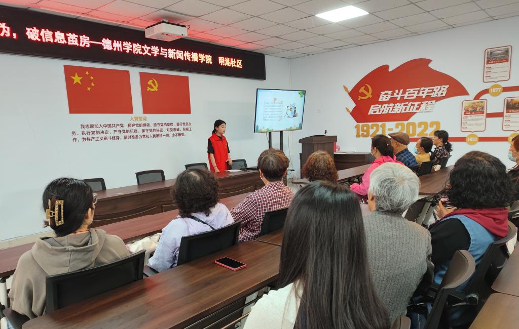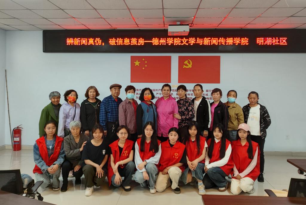 为了帮助老年人正确辨别信息的真伪,提高他们辨别新闻真实性的意识,5月7日,文学与新闻传播学院走进明湖社区开展“辨新闻真伪,破信息茧房”助力银龄跨越数字鸿沟主题社会实践活动。