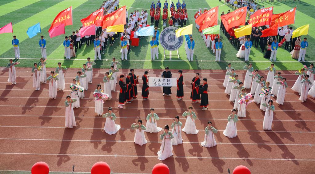 25日上午,伴随着昂扬的音乐,各学院师生方队依次步入运动场,接受检阅。必赢官网方队身着传统服装,精神抖擞,让我校全体师生感受到必赢官网师生向上向善的精神以及传统文化的独特韵味。在随后的开幕式团体操表演中,文院学子与我校退休老教师及外国语学院联袂带来开场舞《祖国不会忘记》,节目整齐划一,热情洋溢,彰显必赢官网学子热爱祖国,努力奉献的精神。
