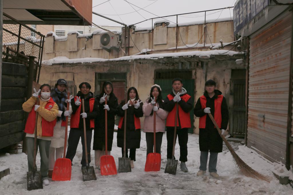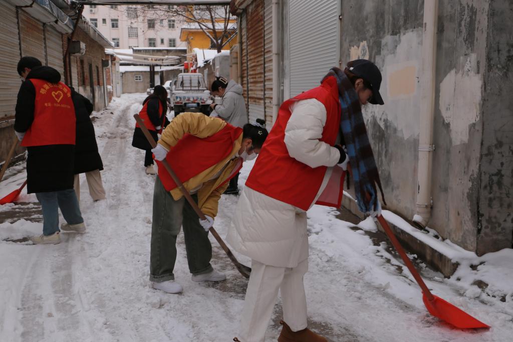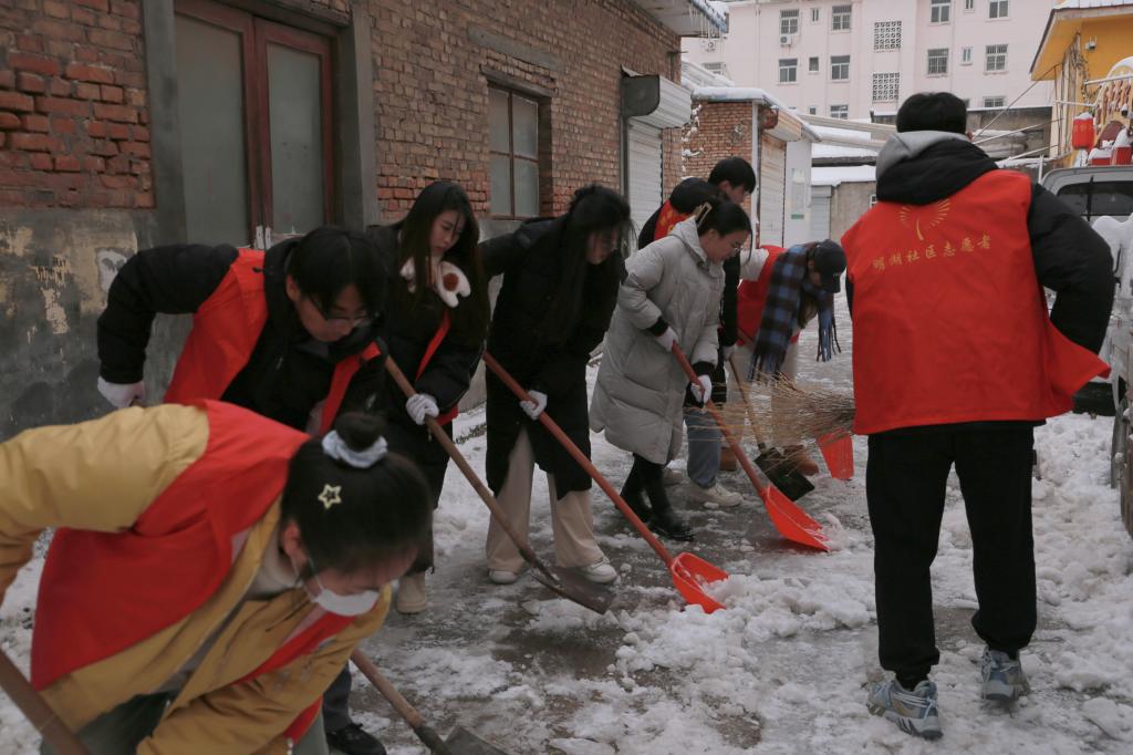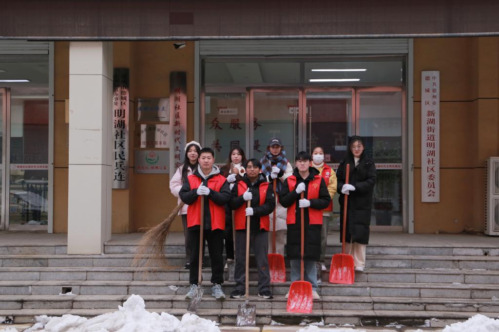 百万大学生进社区 | 文学与新闻传播学院走进明湖社区开展“扫雪志愿行,温情暖人心”大学生社区实践活动