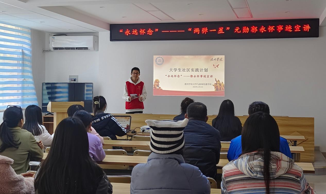 为进一步加强思想政治教育工作,弘扬“两弹一星”精神,充分发挥红色资源的铸魂育人功能,文学与新闻传播学院青年学生志愿者们于11月14日走进小东关社区开展“两弹一星”元勋郭永怀事迹宣讲实践活动