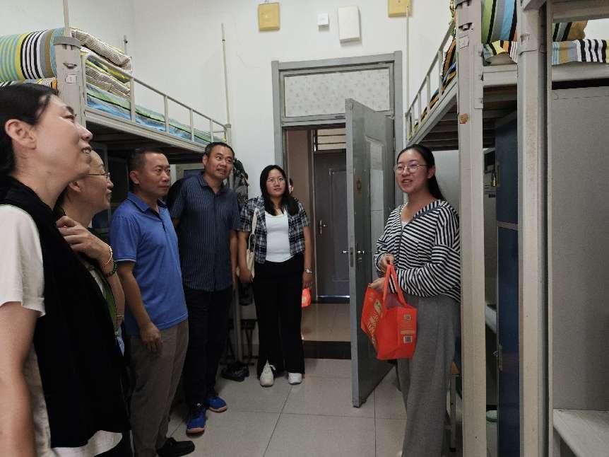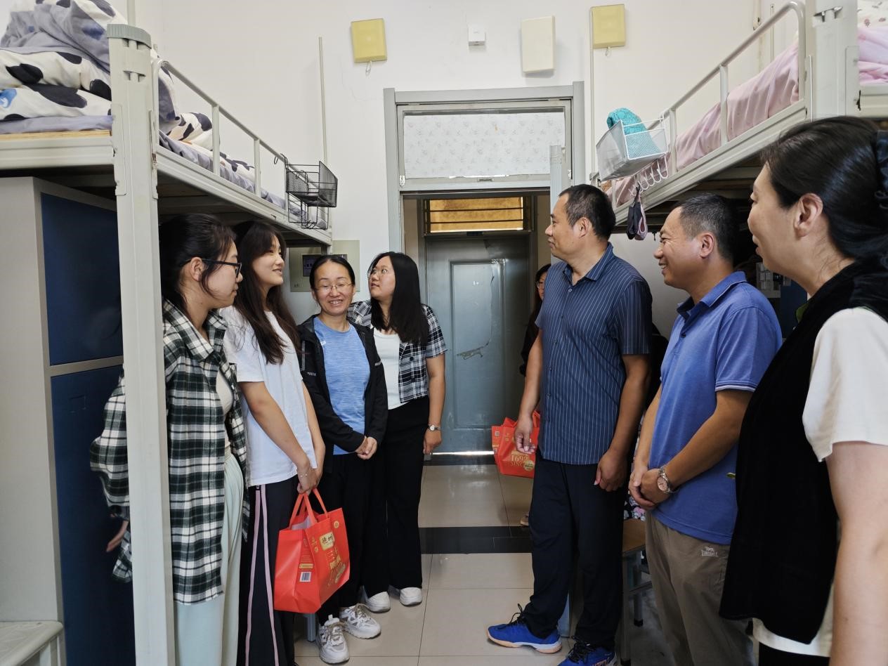 9月16日下午,必赢国际437官网党委书记仲冲、党委副书记、副院长黄传波、党委副书记鞠晶晶、24级辅导员李晓燕、辅导员沙彦君来到学生宿舍,耐心询问同学来校后的生活和学习情况,是否适应鲁西北的饮食与气候,中秋节想不想家。同学们纷纷谈了她们各自的入学感受,对学校、学院为学生的学习、生活提供的便利条件表示感谢,对老师无微不至、春风化雨的关心表示感动,决心提升自身综合素质,学好专业技能,秉承崇德启智励志博学的德院精神,积极进取。