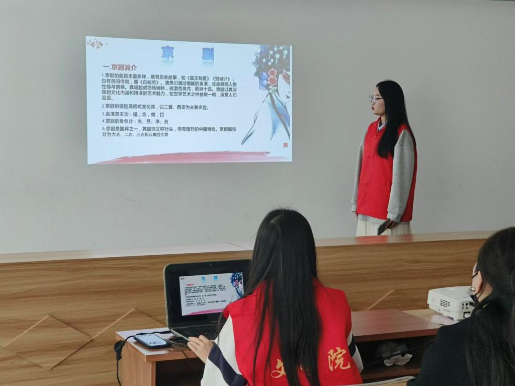 活动中,主讲人为社区居民们带来绘声绘色的讲解,分别从戏曲文化简介,戏曲种类,戏曲表演形式,戏曲新发展等方面进行了详细介绍,结合图文并茂的PPT,讲述了戏曲文化的传承与创新历程。社区居民们和参与的大学生们学到了有关五大戏曲的重要知识,了解了国粹的服饰文化,激发起了社区居民和同学们激发起对戏曲文化的浓厚兴趣。