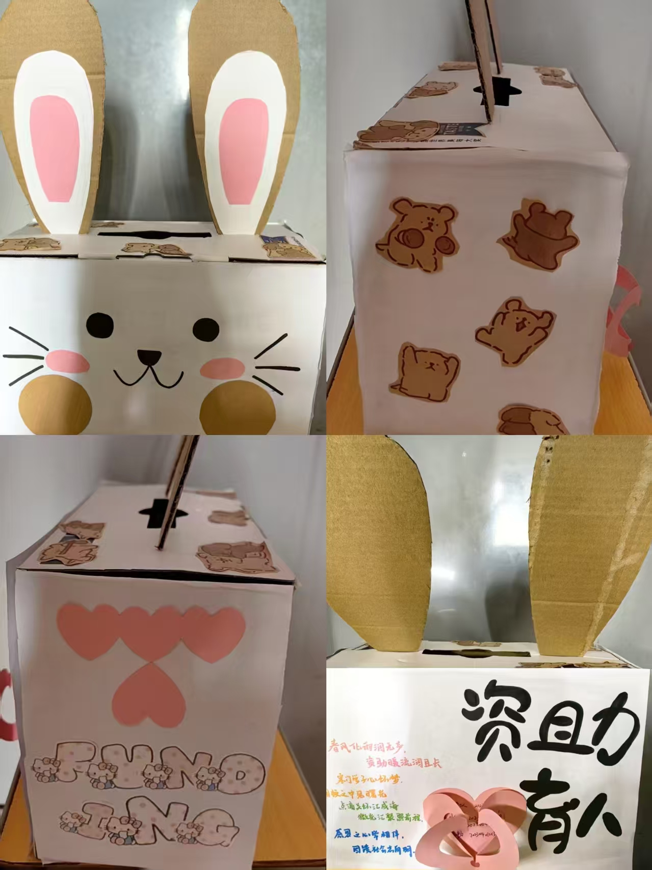 活动鼓励同学们充分释放想象力与创造力,以废旧材料为载体,通过艺术化、实用化的创新改造,让一件件旧物焕发新生。活动现场,同学们各展风采:既有独辟蹊径、专注打磨个人创意的"独行侠",也有默契协作、集思广益的团队组合。大家化身生活中的"寻宝家",从日常闲置物品中发现改造潜力,凭借天马行空的构思与灵巧的双手,让废旧物品实现从"弃物"到"宝物"的华丽蜕变,赋予它们全新的实用价值与艺术生命力。