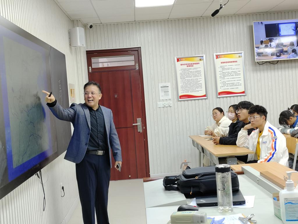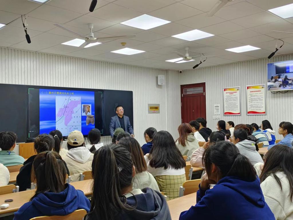 20221011日,文学与新闻传播学院在博文楼智慧教室举办“黄河——大运河文化”学术讲座,德州地域文化研究中心主任王守栋教授应邀作题为《“德”文化的渊薮——黄河文化与运河文化融合的结晶》专题报告。文学院2022级全体新生现场以及在线聆听。