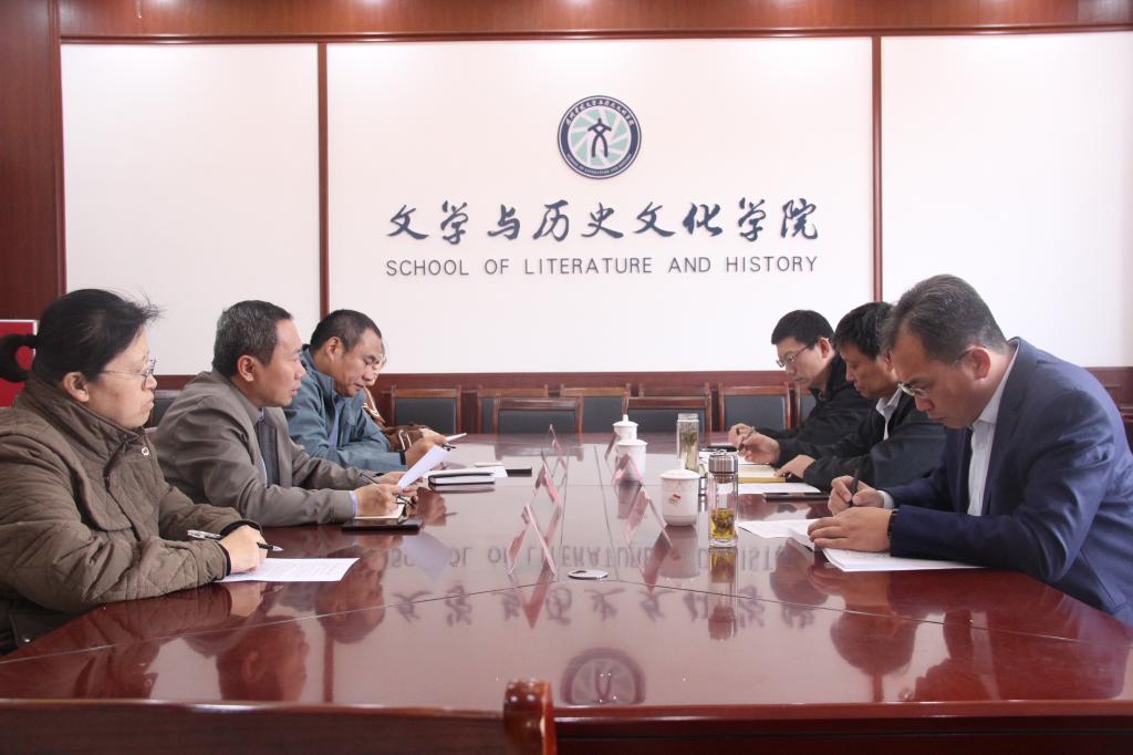 黄传波做了专题汇报,在国际中文教育领域,为了提升实践基础,学院已签订海外实践基地合作协议1项,进一步发挥国际交流与合作功能;在学科语文领域,学院将加强顶层设计,进一步凝聚学科特色,提高学科建设水平。近5年内,文学院每名骨干教师发表的高水平学术成果不少于5项,主持省部级及以上有关课题不少于1项。仲冲围绕学科建设和申硕工作方面的重点与难点进行了汇报。学院将聚焦重点研究领域,整合各种资源,精准发力、攻坚克难。