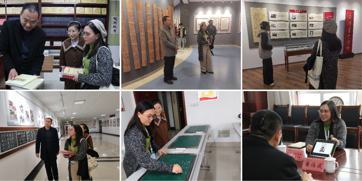 最后,梅洛迪•奥乐都老师来到桑恒昌文学馆参观,讲解员介绍当代诗人桑恒昌先生的怀亲诗,诗画作品与生平事迹,共同感受中华文化的传承与创新。